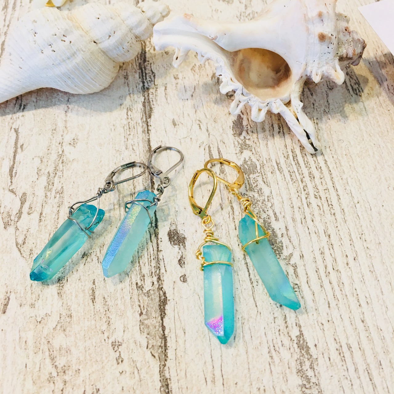 人気のアクアブルークリスタル!青い海と青い空の色♫海でもピアス