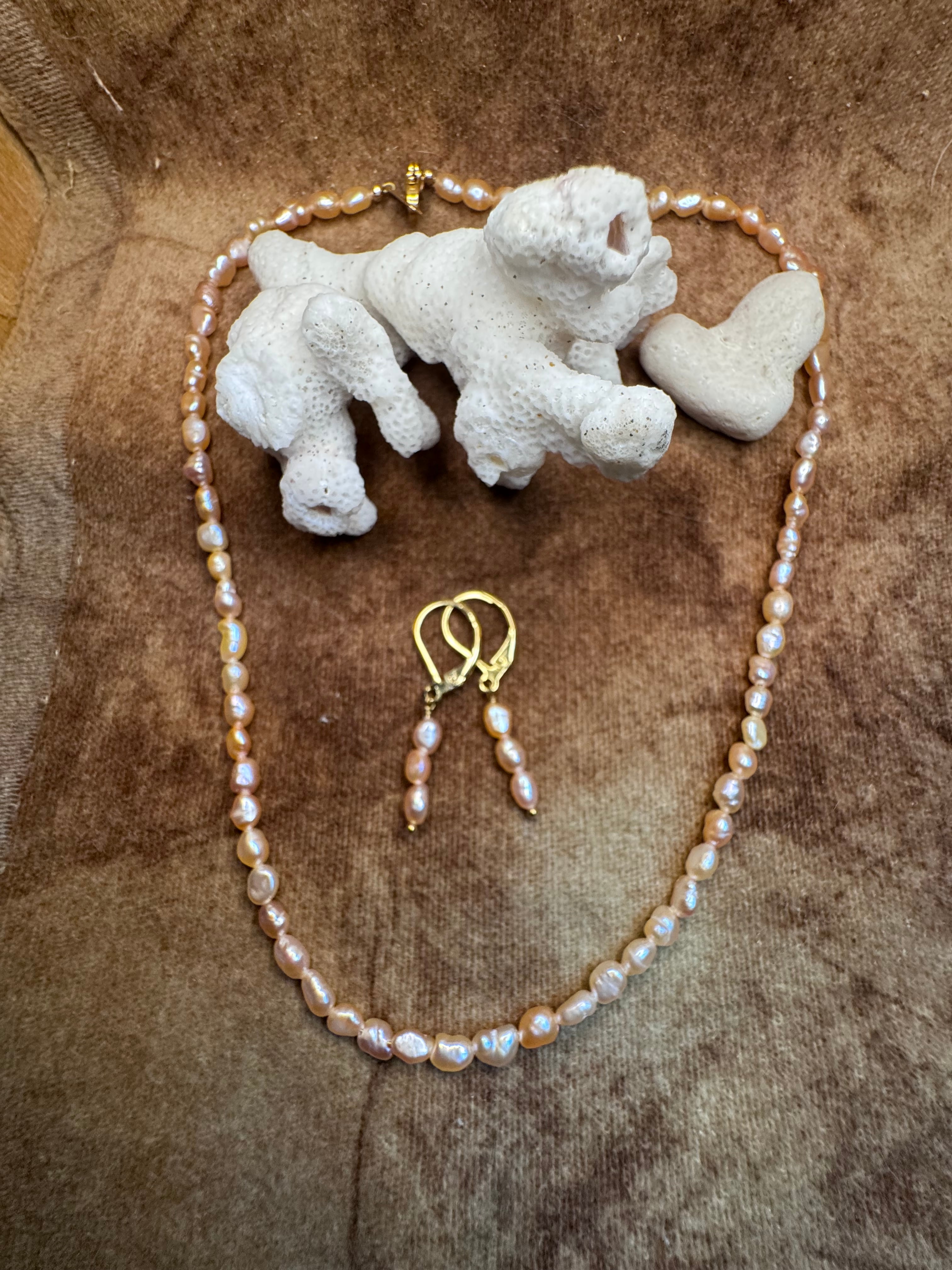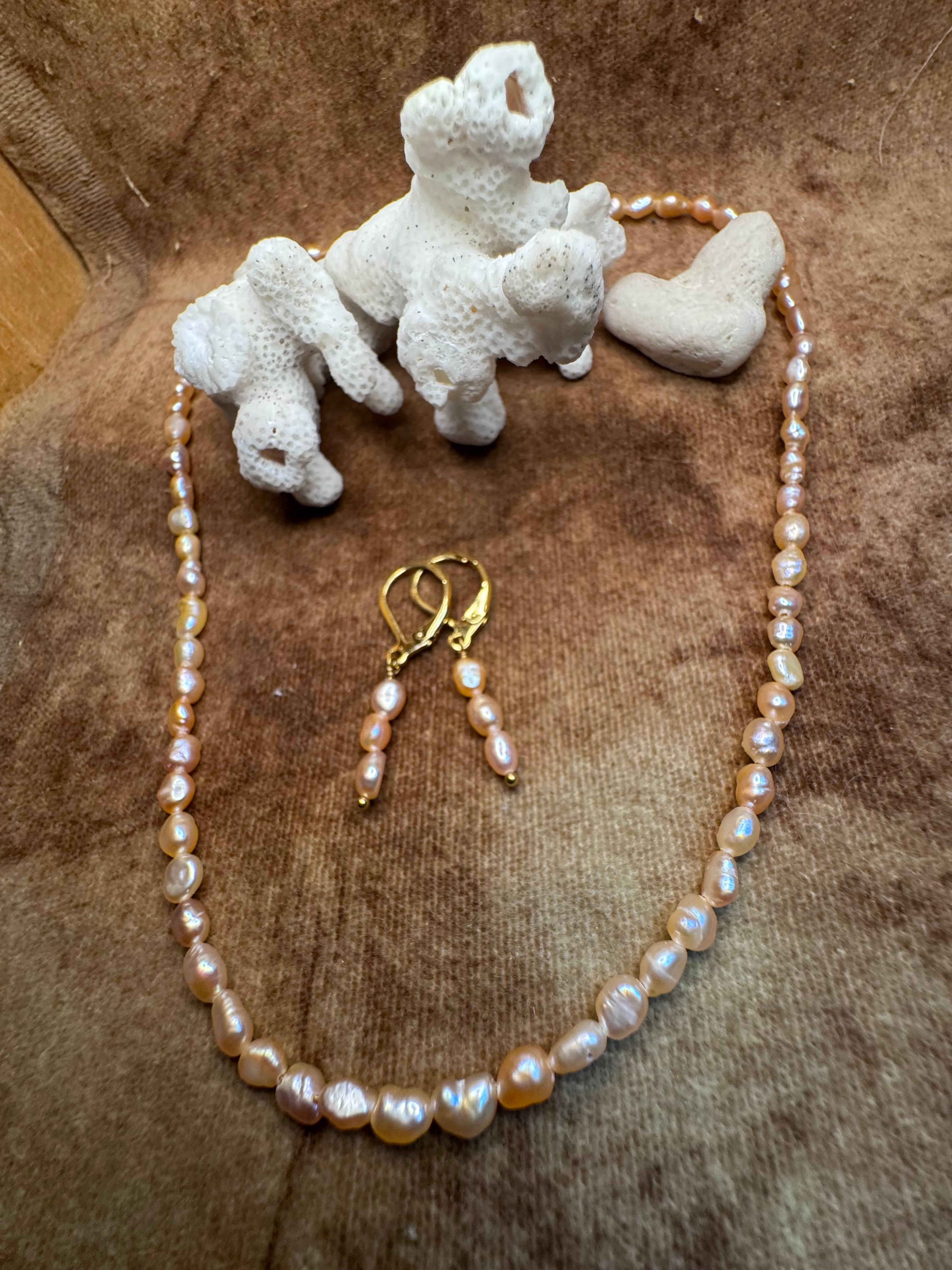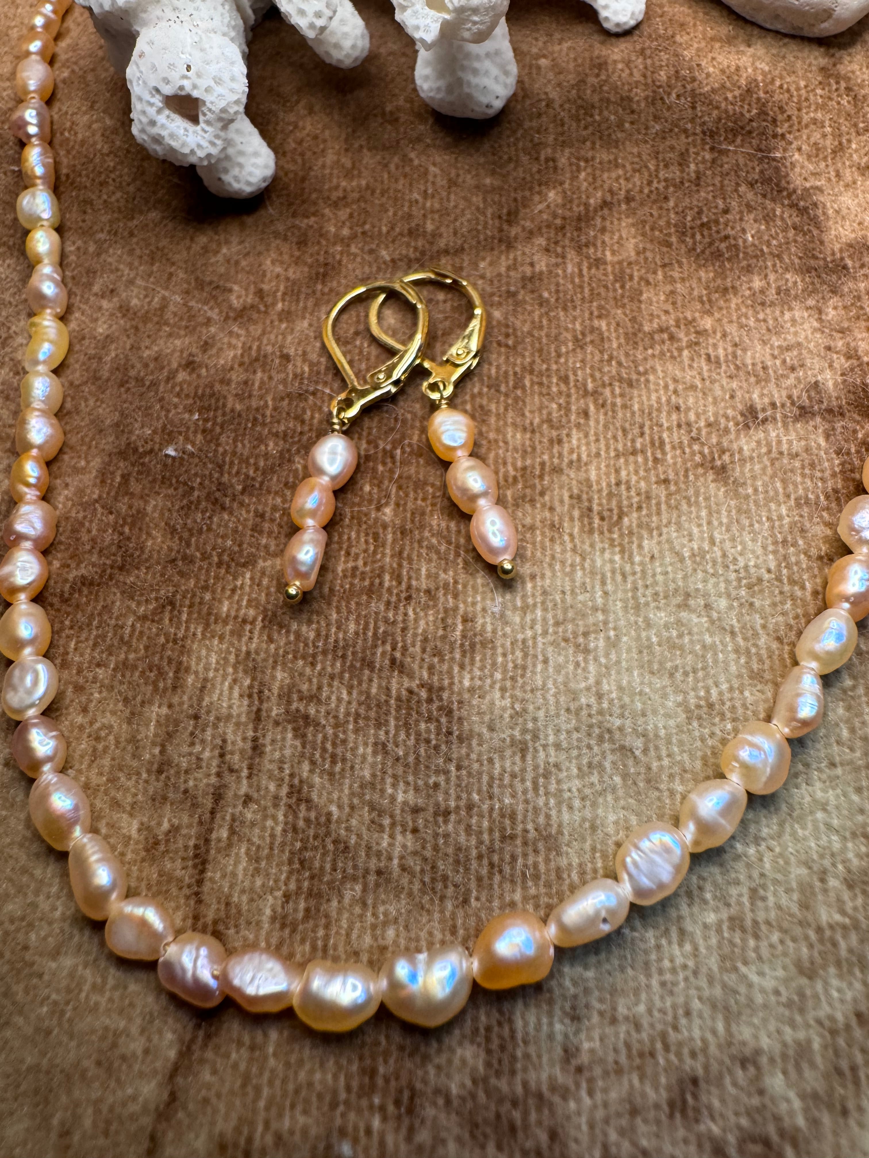 可愛いオレンジパールのネックレスとピアス