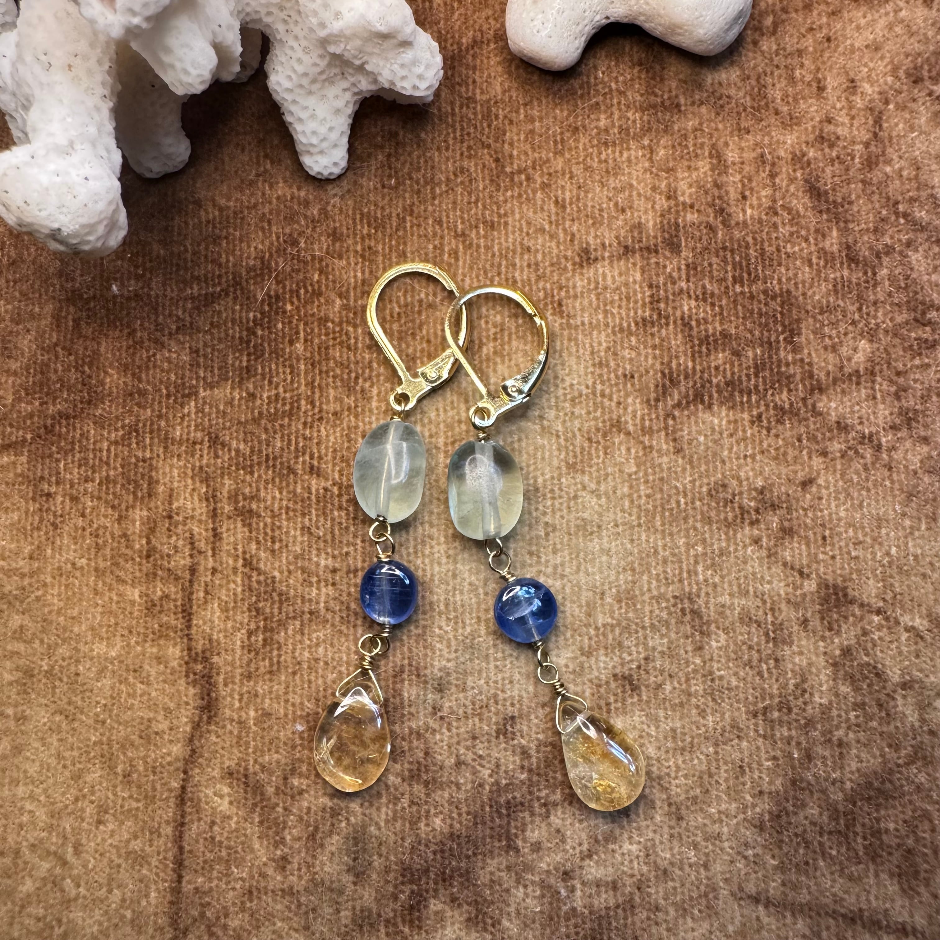 虹入りシトリンの!揺らしてなんぼ 海でもピアス!あ〜可愛い B