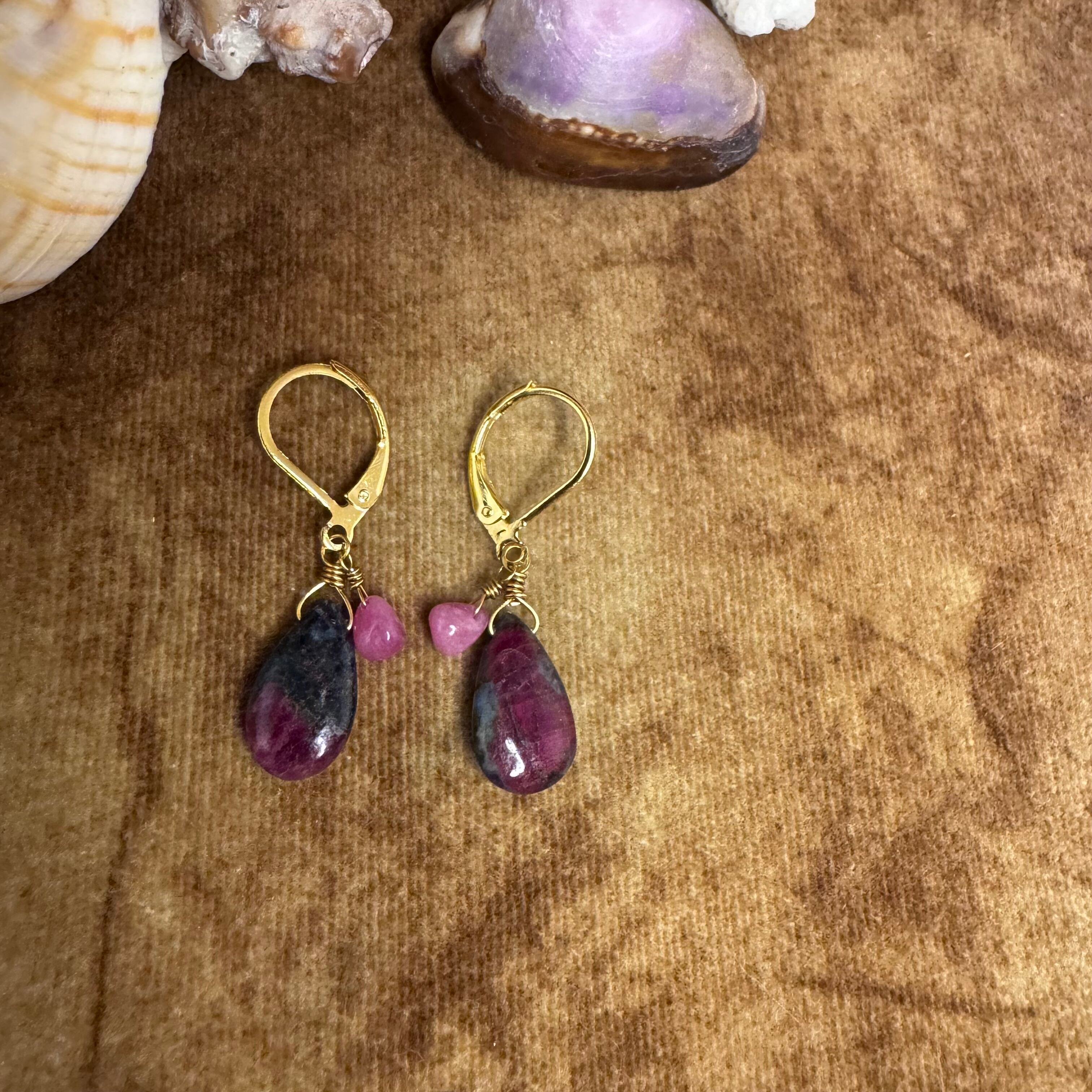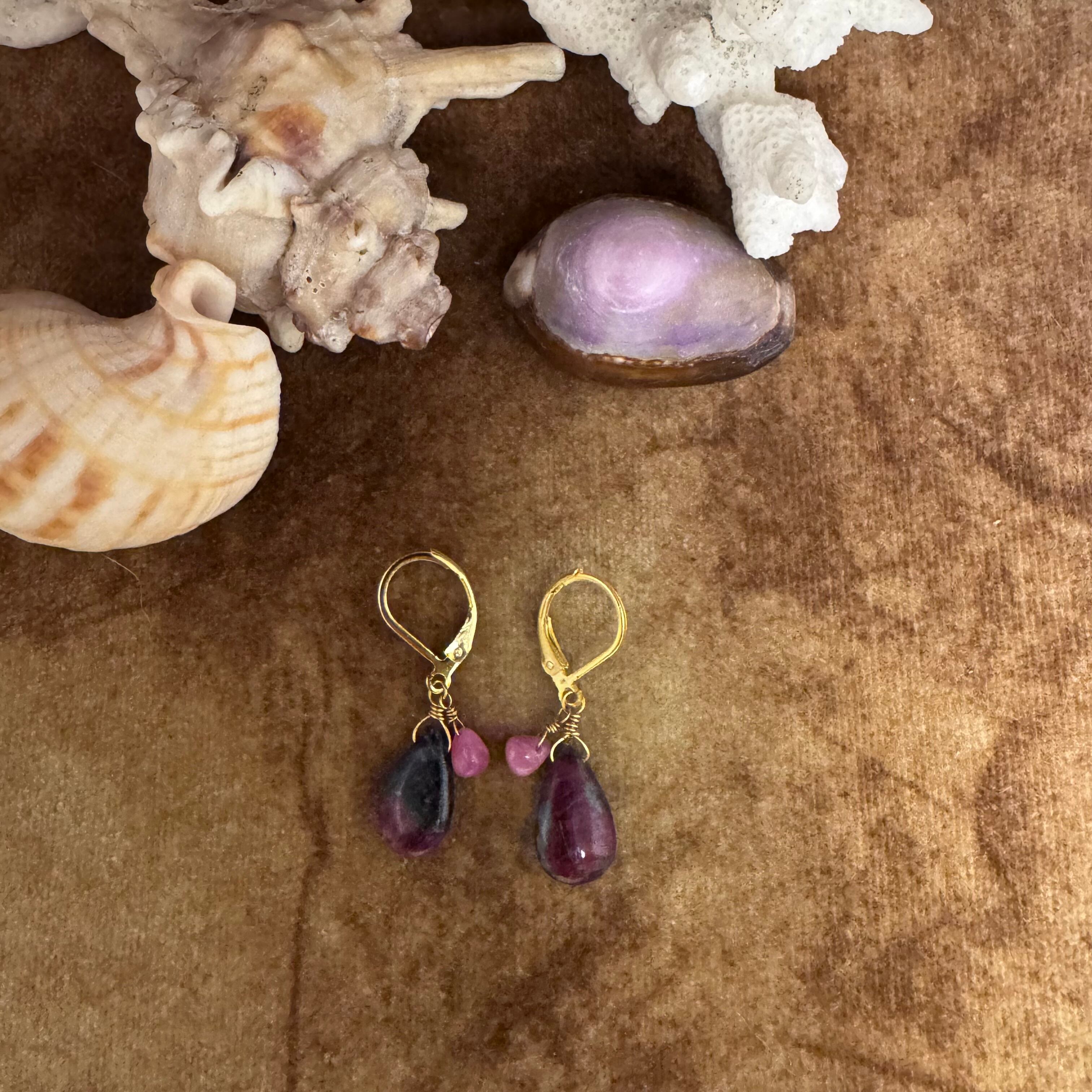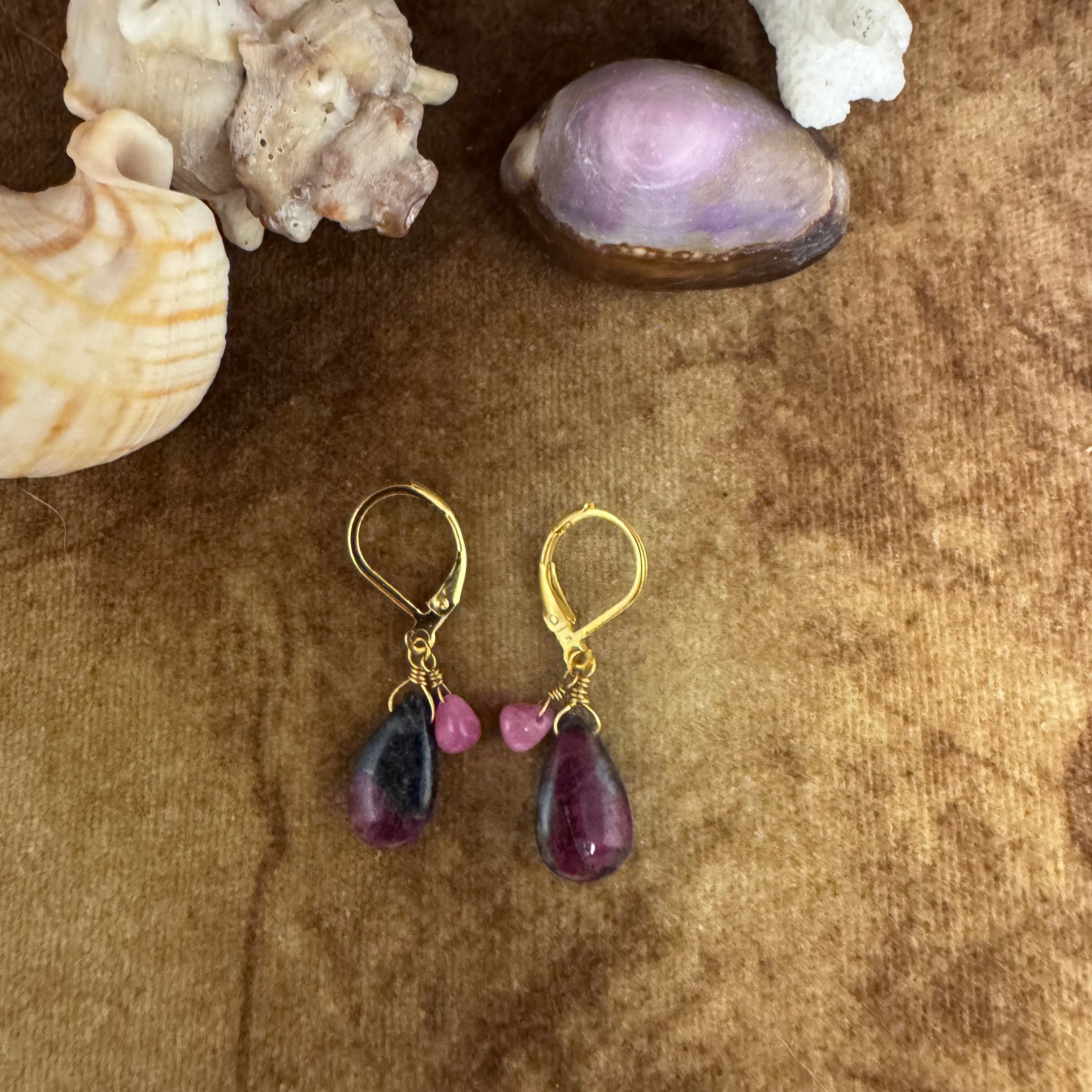 ルビーインゾイサイト&非加熱ルビーの海でもピアス!