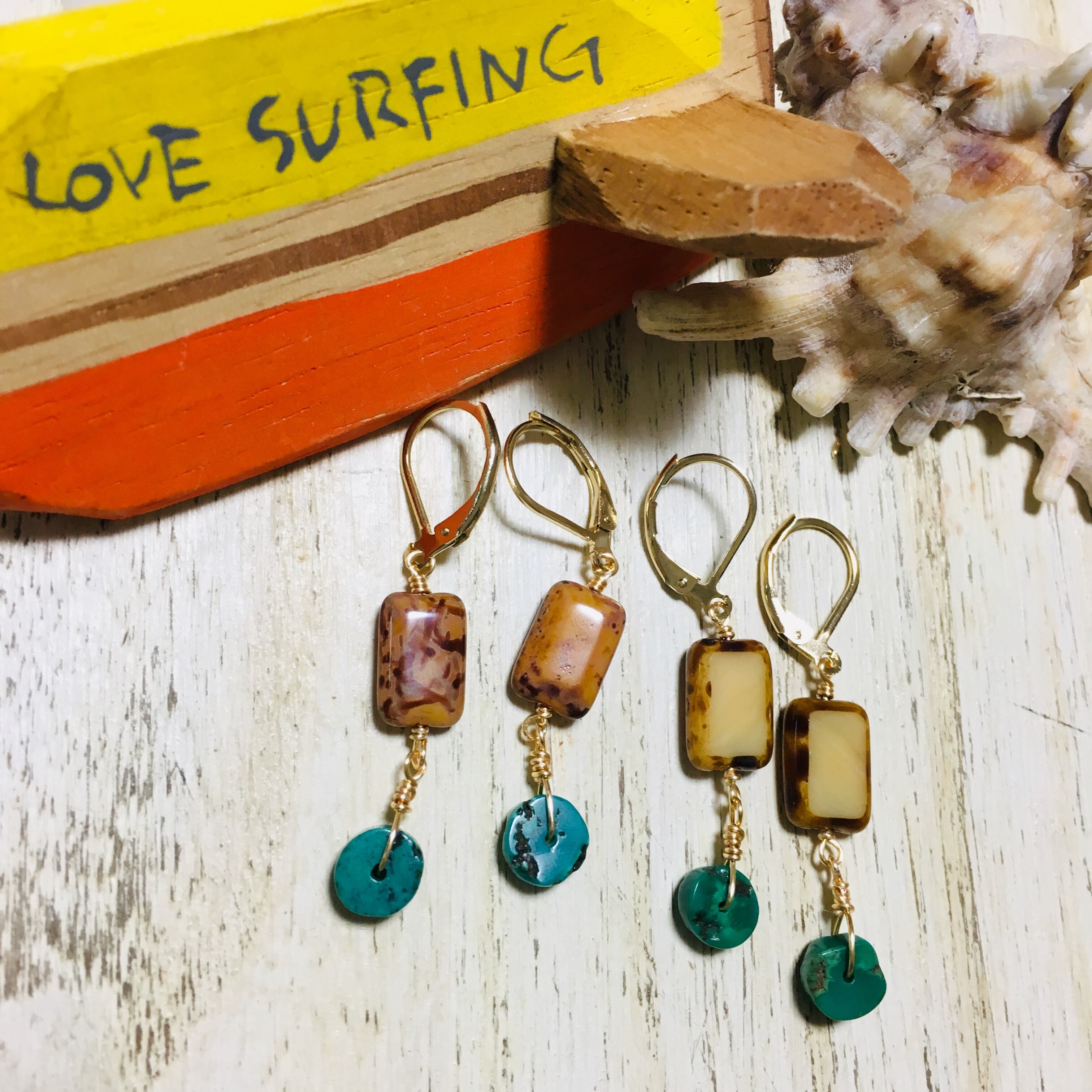 スクエアのチェコビーズと天然ターコイズ!