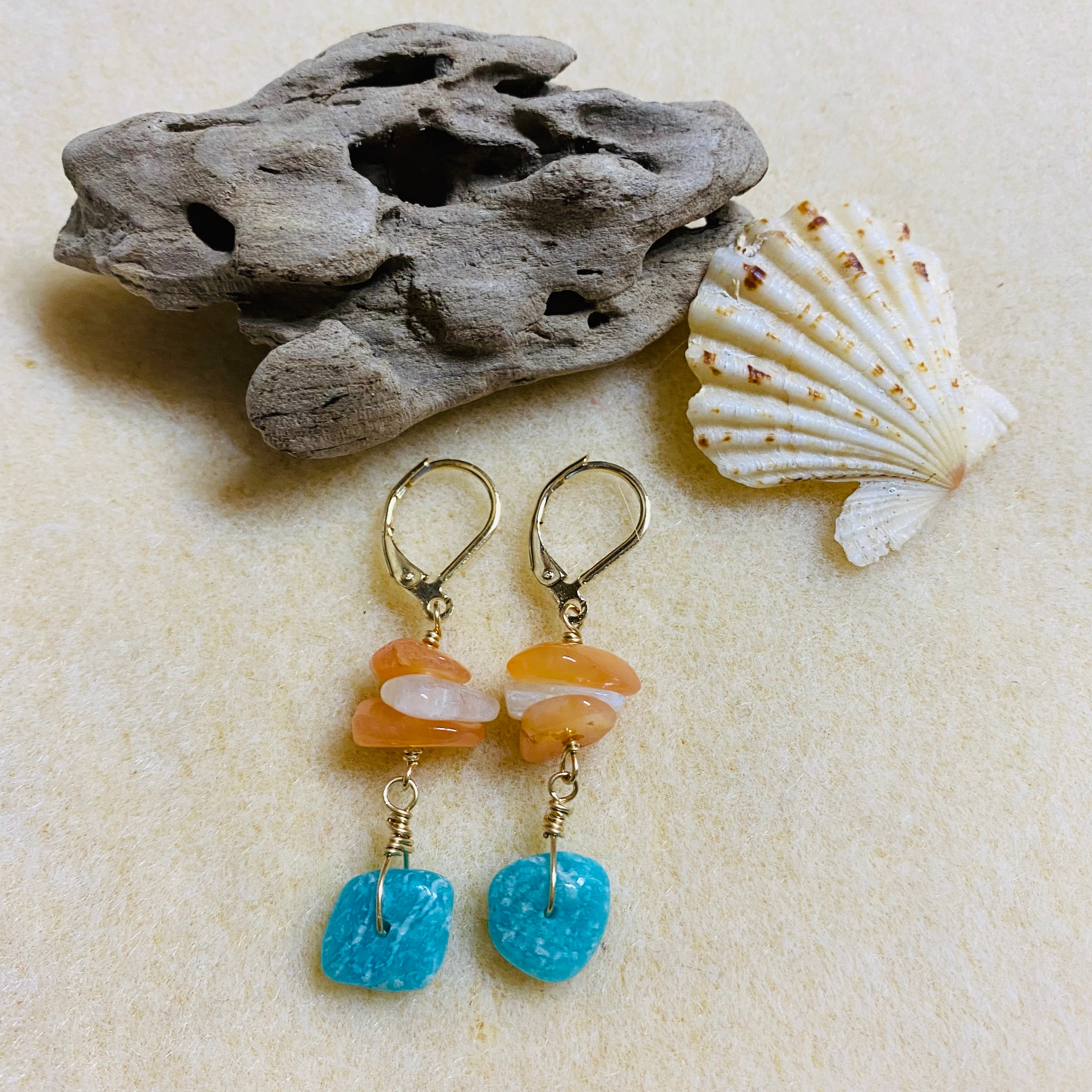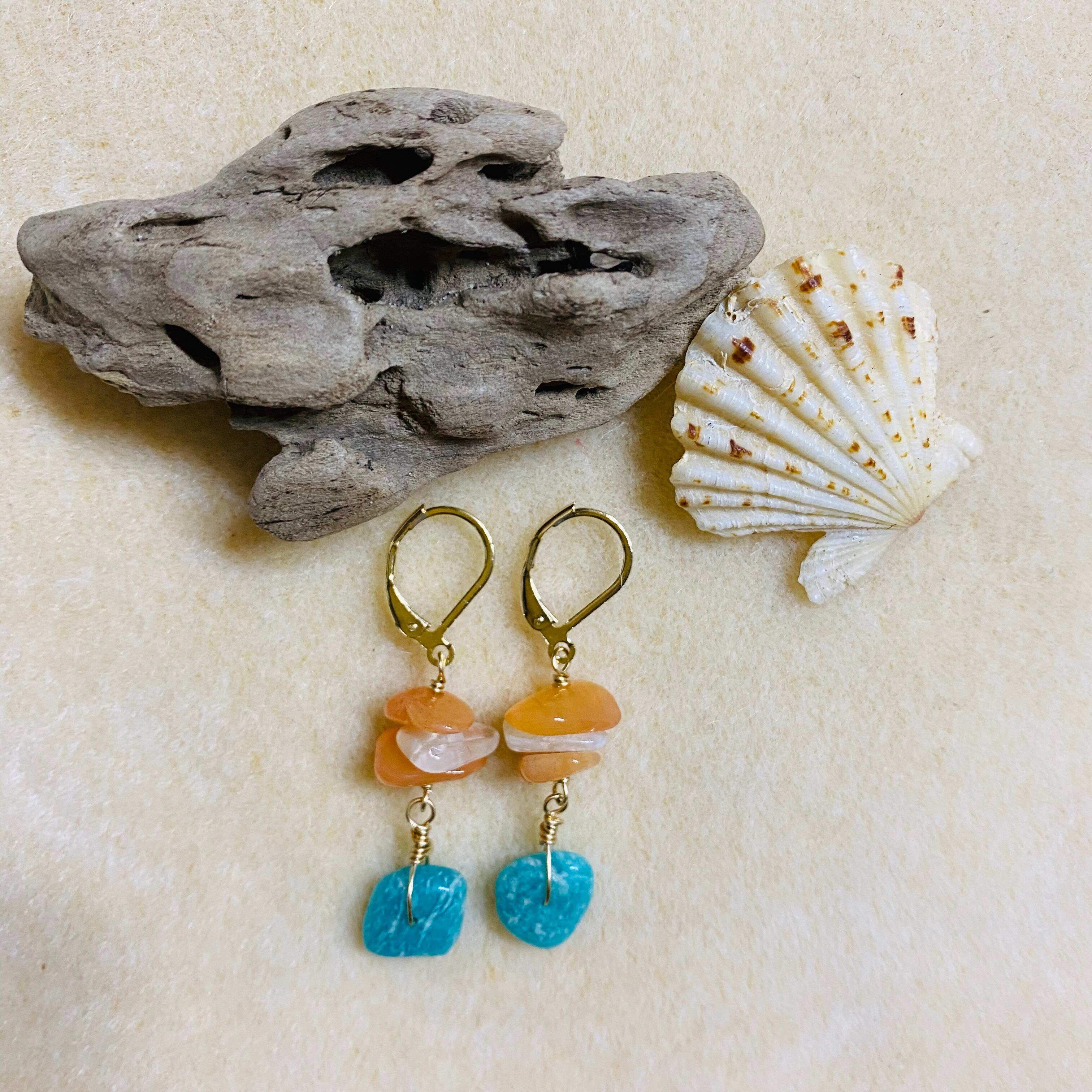 カーネリアンとアマゾナイト♫やる気を高める海でもピアス♫