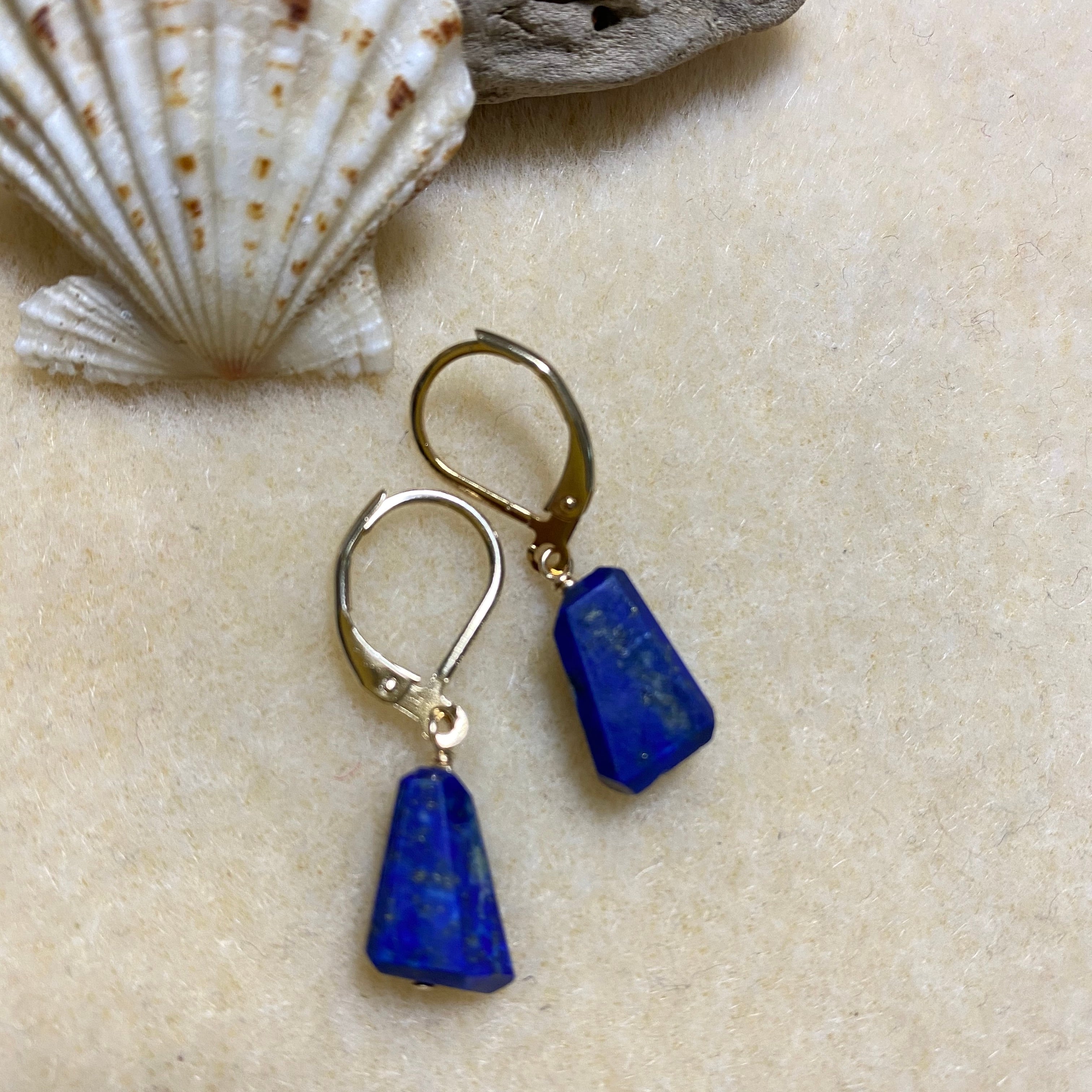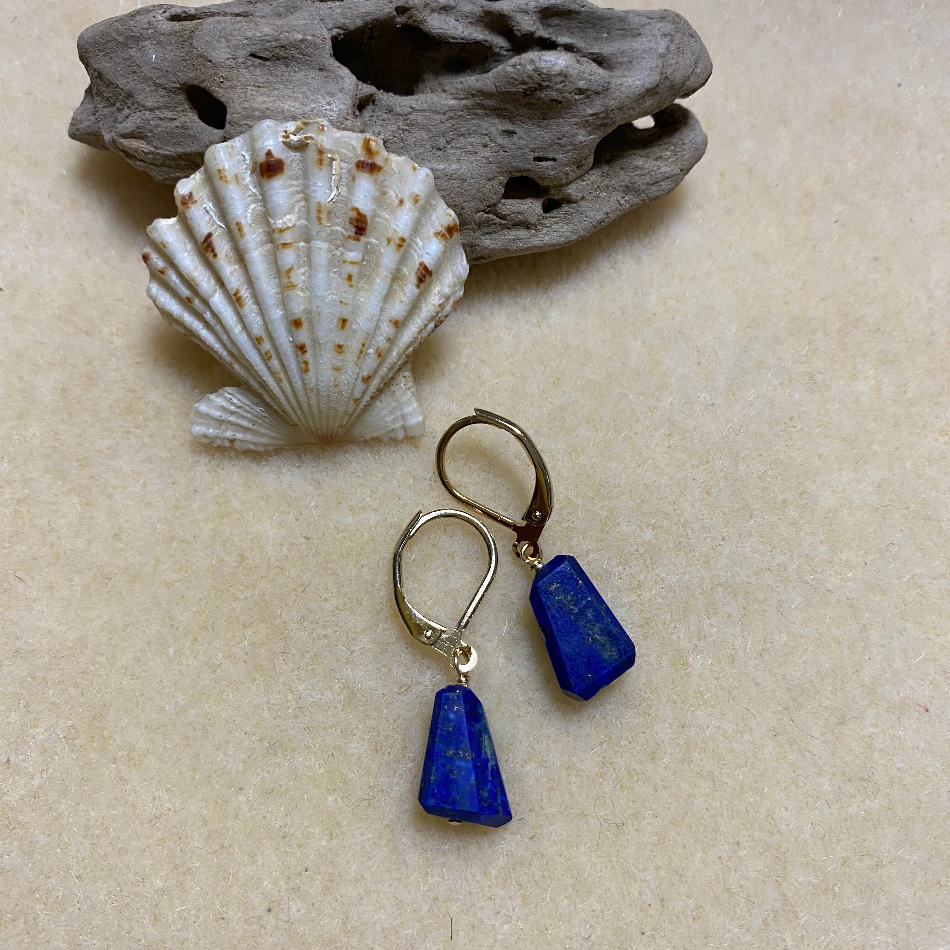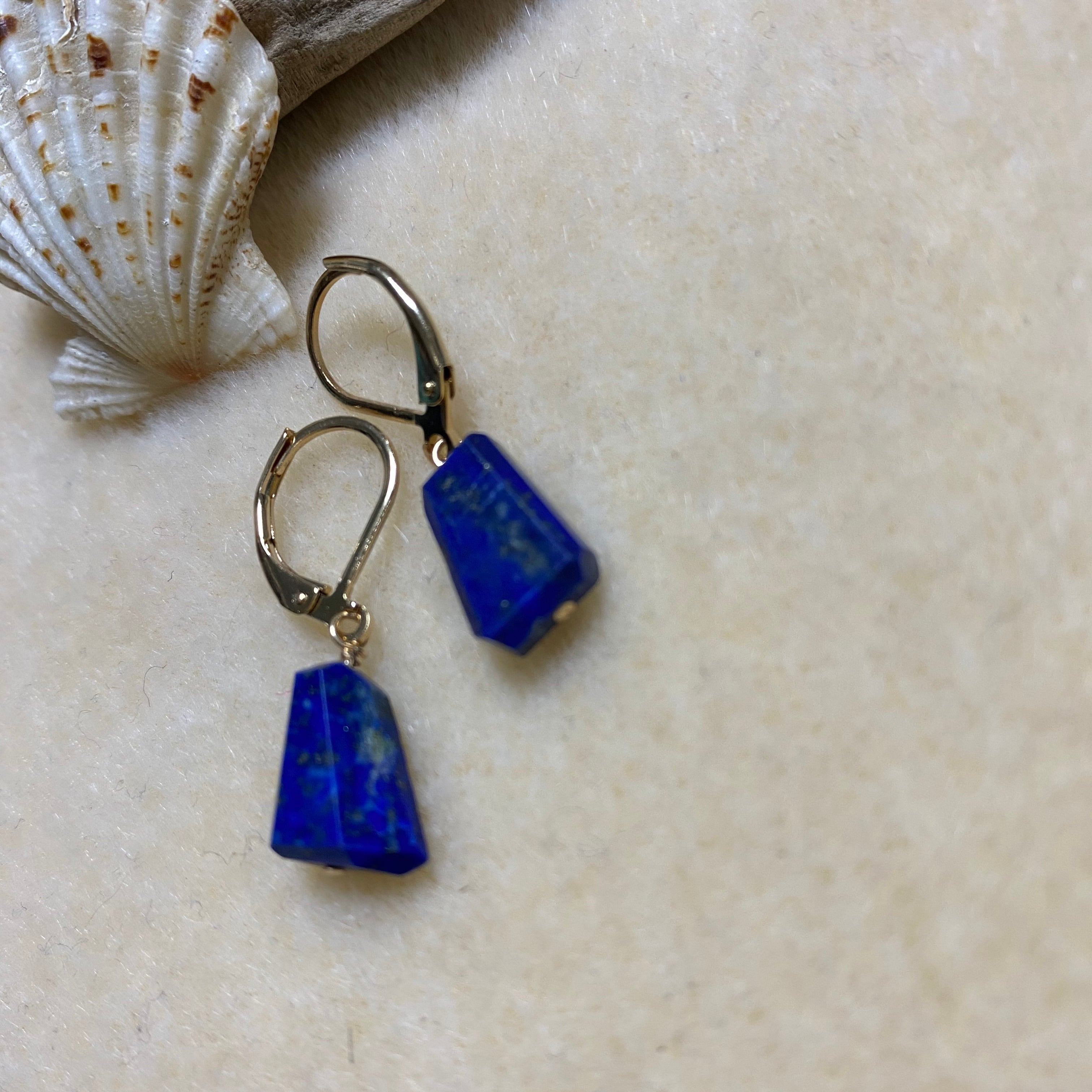 アシンメトリー ラピスラズリのシンプル海でもピアス♫ 316Lサージカルステンレスフック アレルギー対応・海水でも錆びない♪