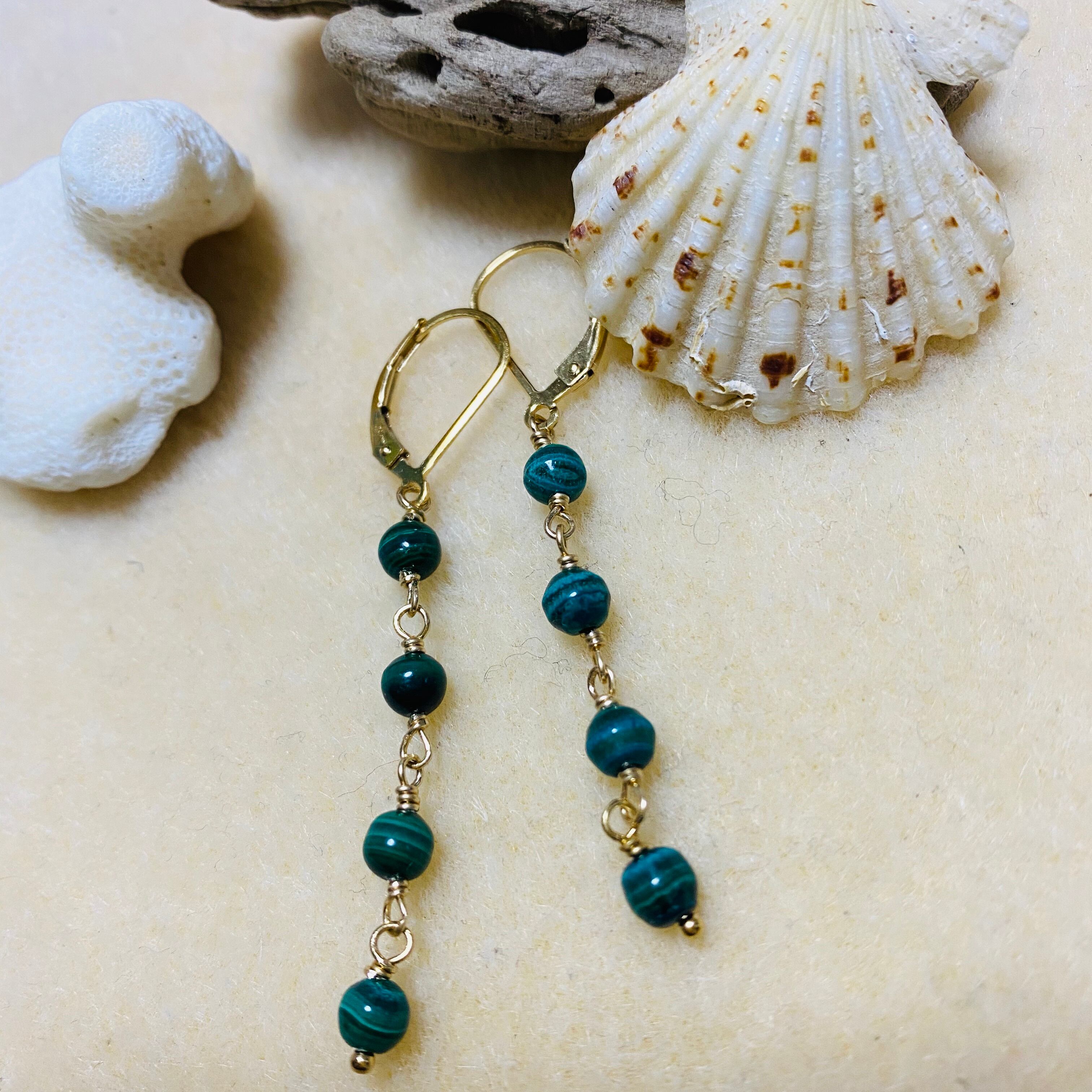ゆらゆらかわいい♪マラカイト4段海でもピアス