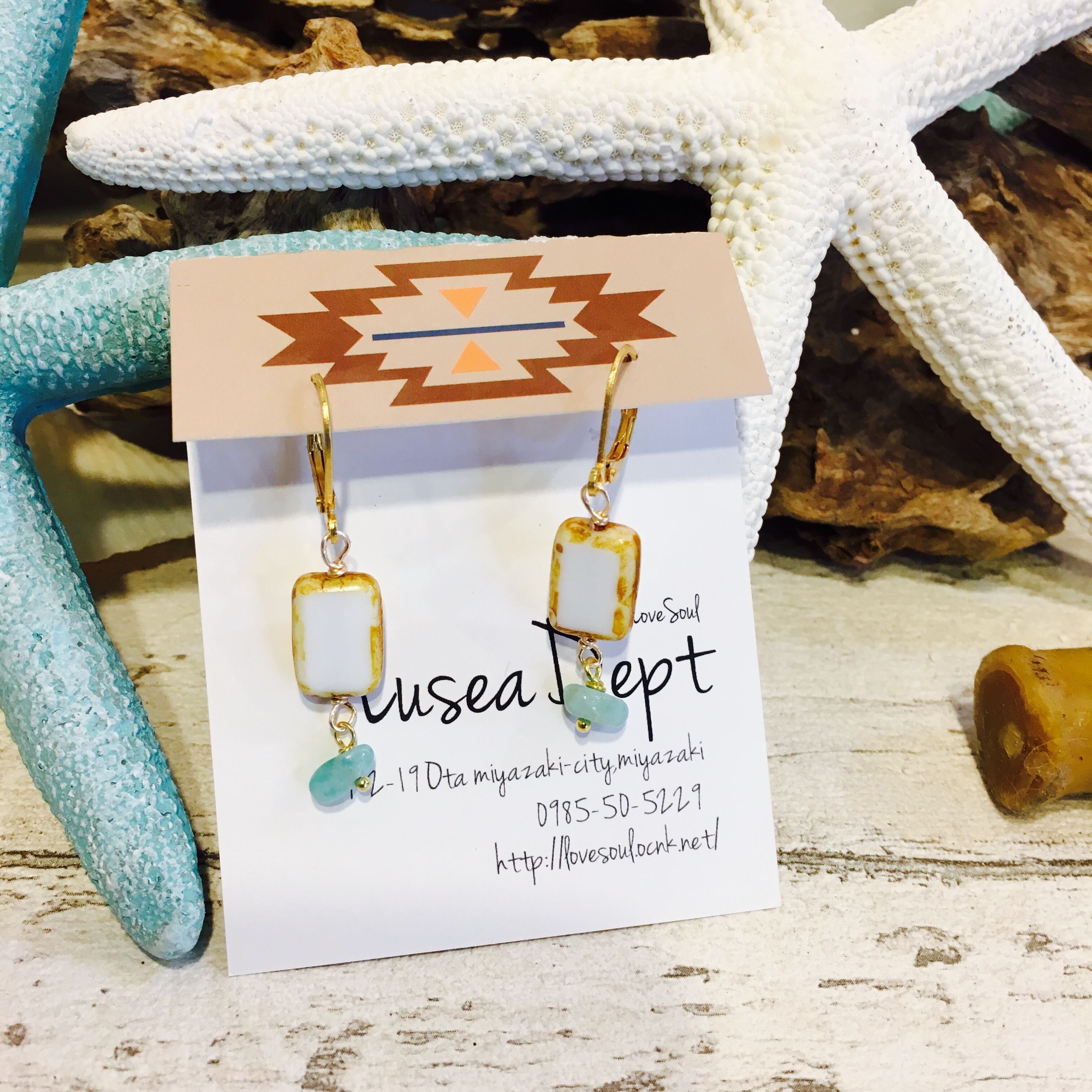 海でもピアス!チェコビーズとアマゾナイトで爽やか♪