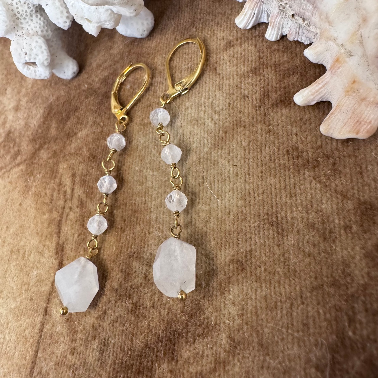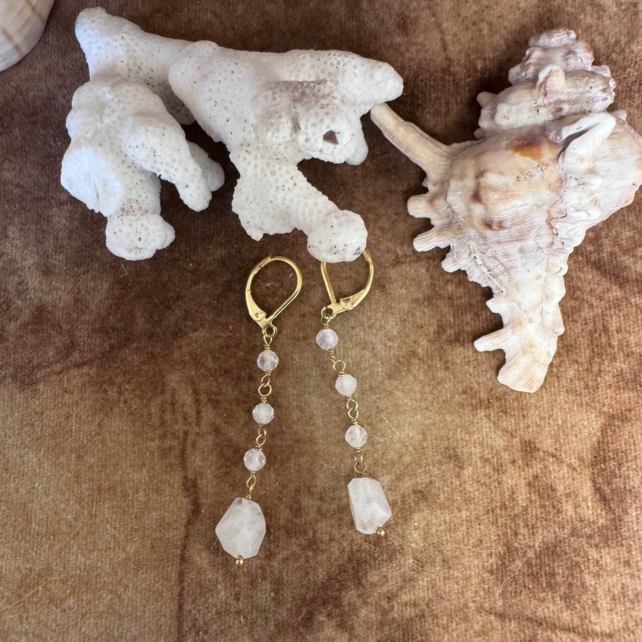 レインボームーンストーン(ホワイトラブラドライト)の女っぷり上がりますよ海でもピアス♬ 316Lサージカルステンレスフック アレルギー対応・海水でも錆びない♪