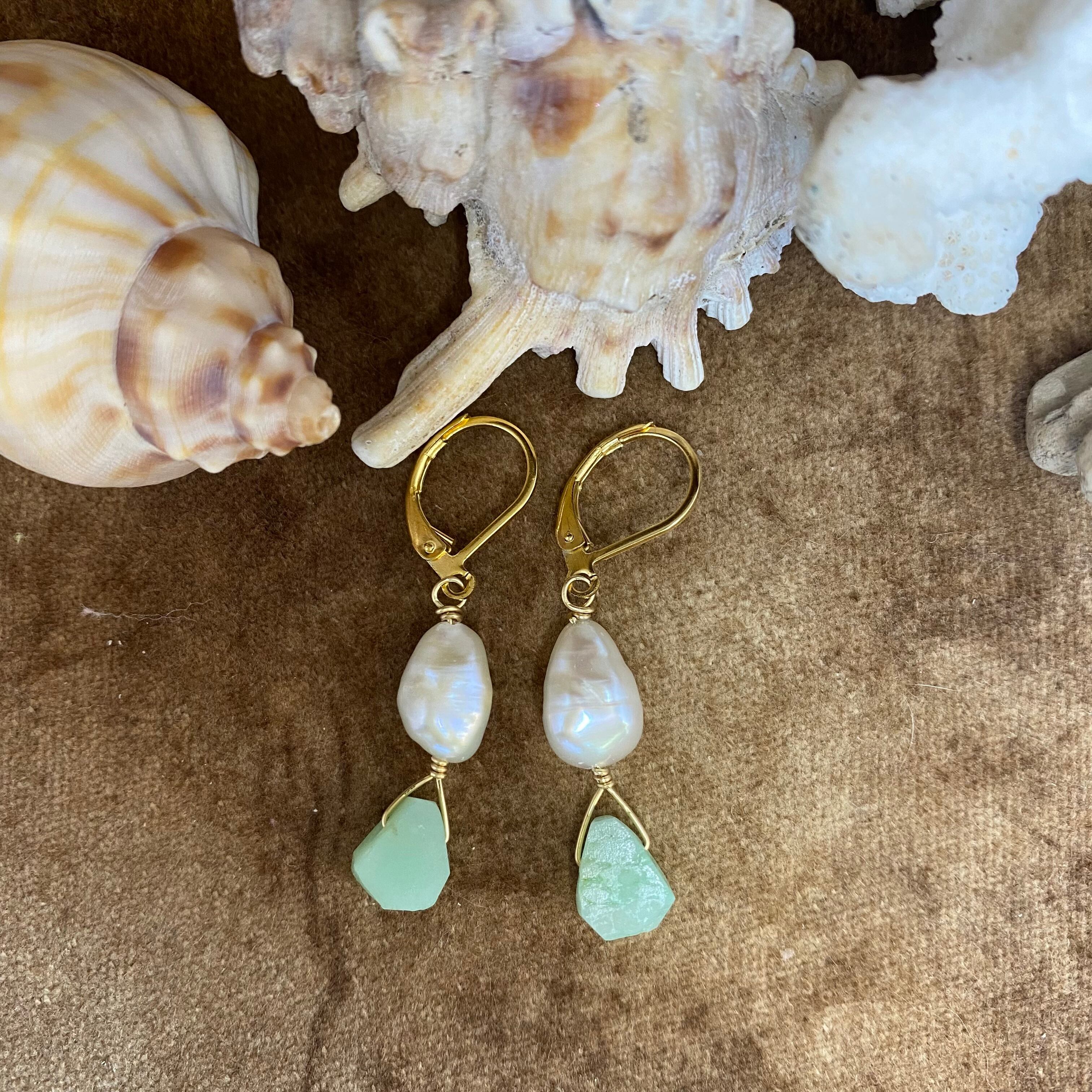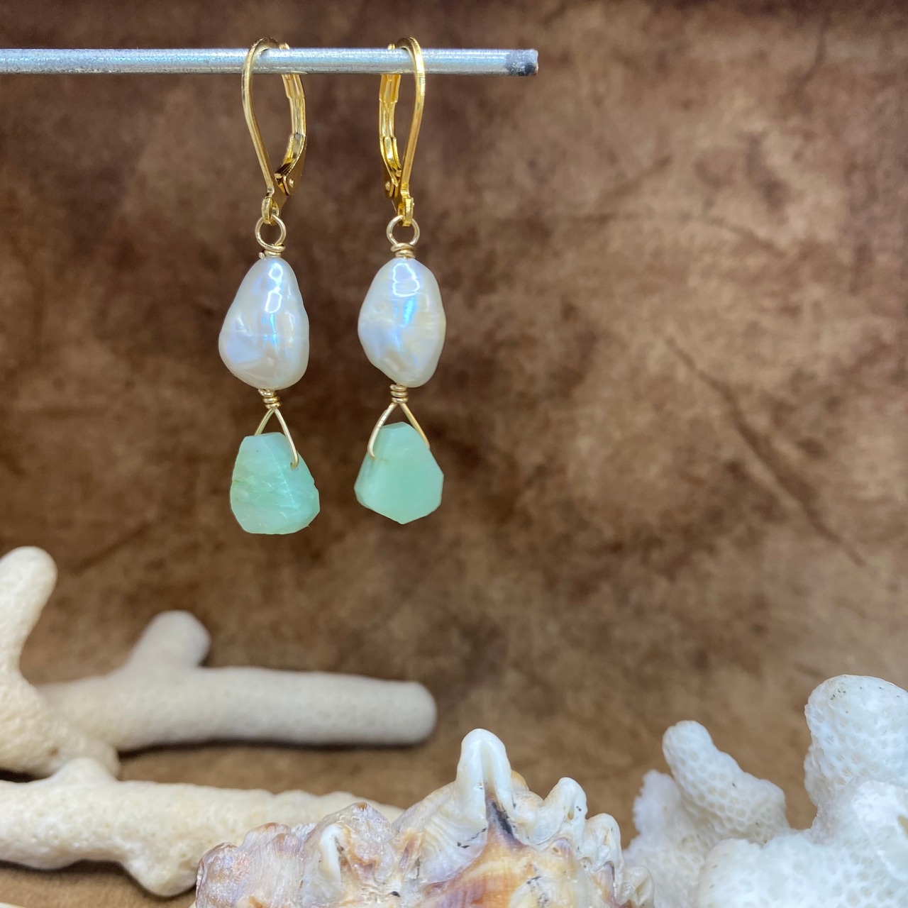 F様用 パールとパステルグリーンの優しいカラー♪海でもヨガでもピアス 316Lサージカルステンレスフック アレルギー対応・海水でも錆びない♪